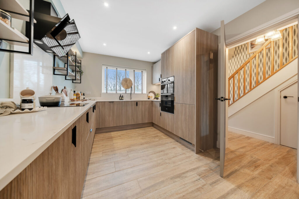 - Fully fitted kitchens with integrated fridge/freezer, dishwasher, oven, and hob
